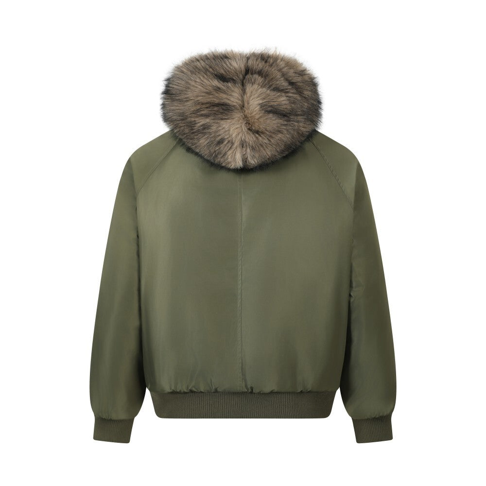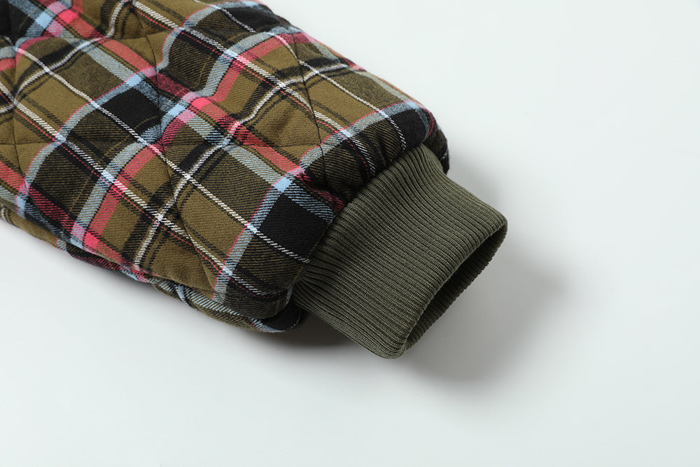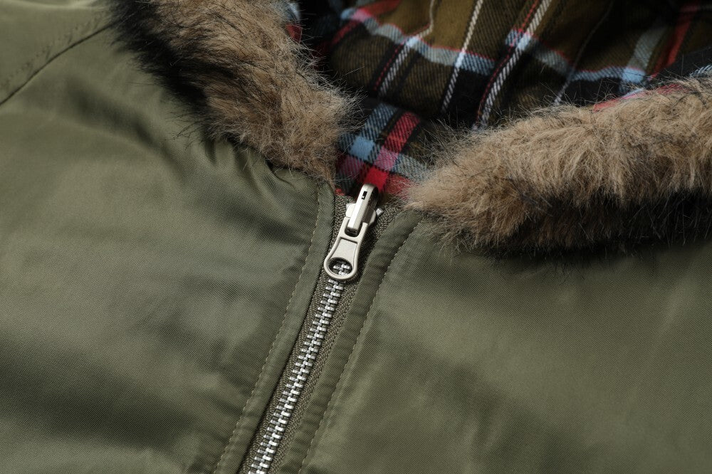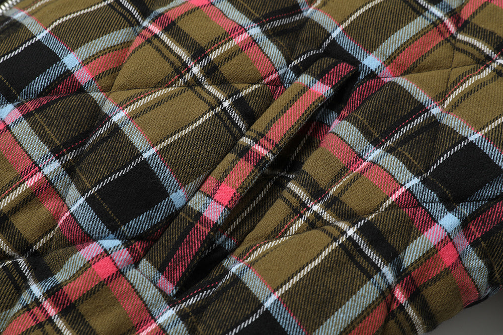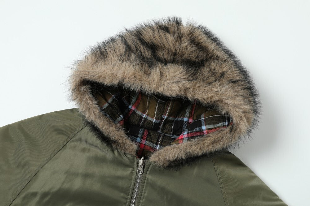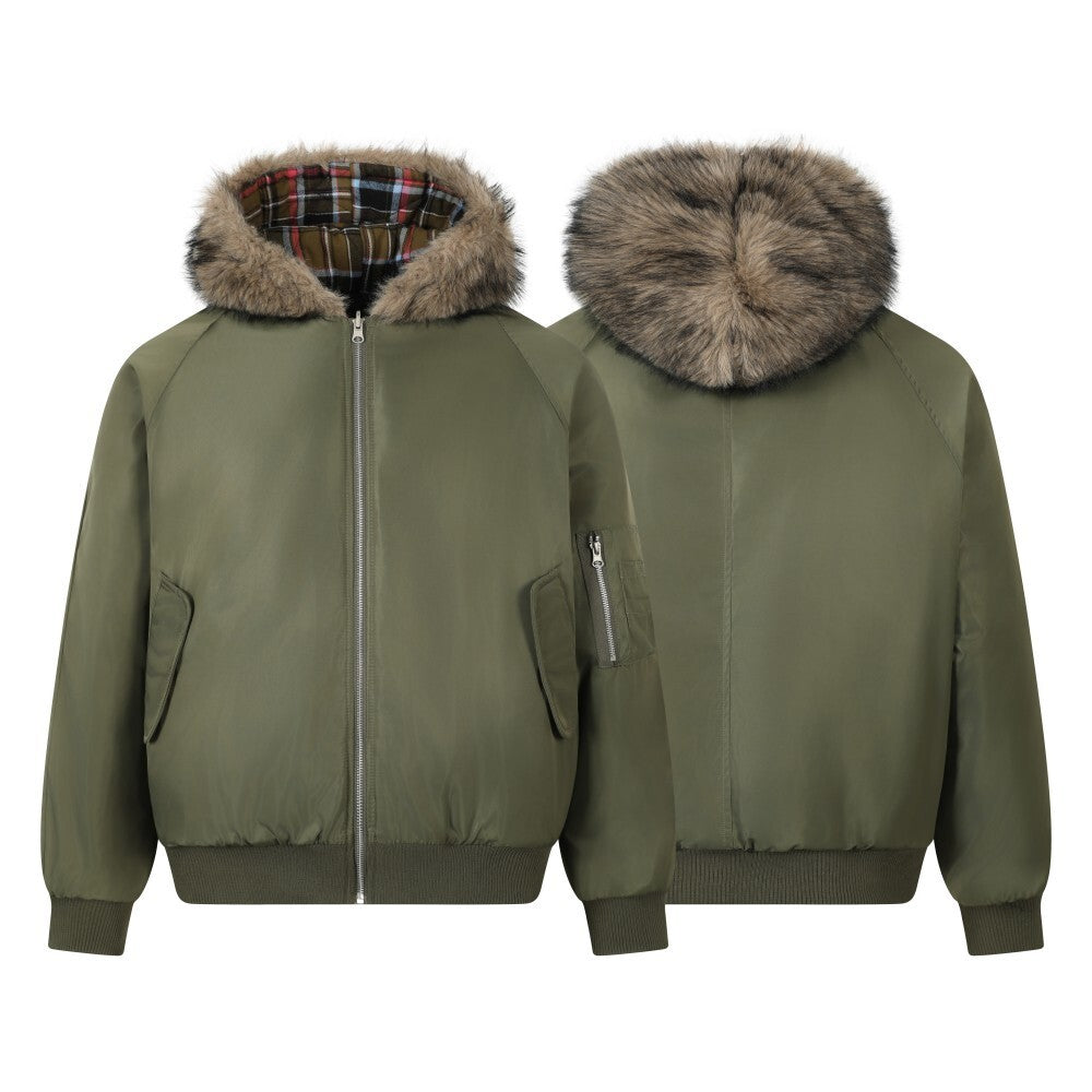Vintage American Reversible Plaid Fur-Collar Padded Jacket