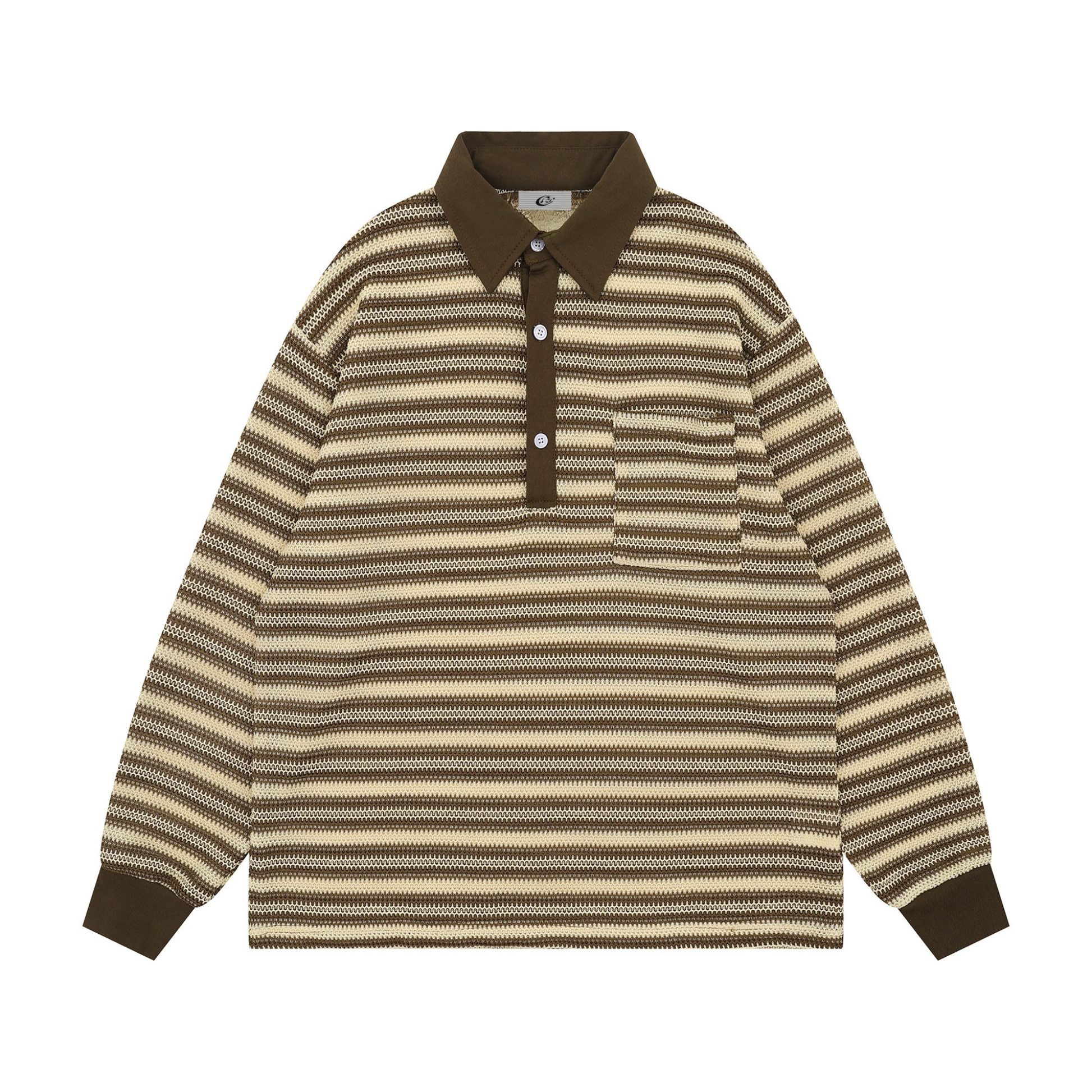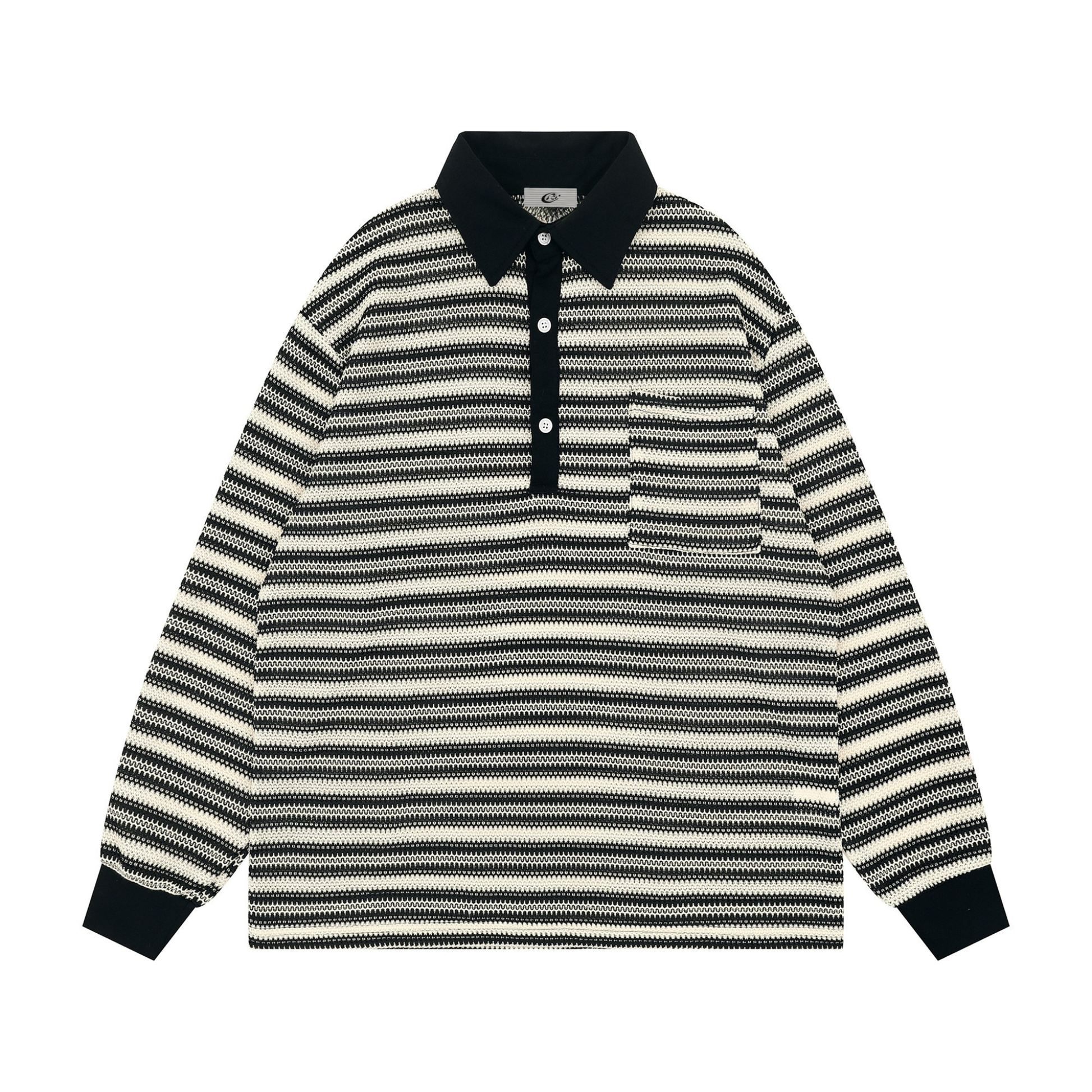The Omirad Striped Knit Long-Sleeve Polo delivers a clean retro vibe with a modern streetwear edge. Featuring a textured stripe knit pattern and a contrast collar with a classic four-button placket, this piece blends relaxed comfort with refined detail. The chest pocket adds subtle utility while maintaining a minimal, laid-back silhouette. Perfect for elevating everyday fits—from casual street looks to layered fall outfits.