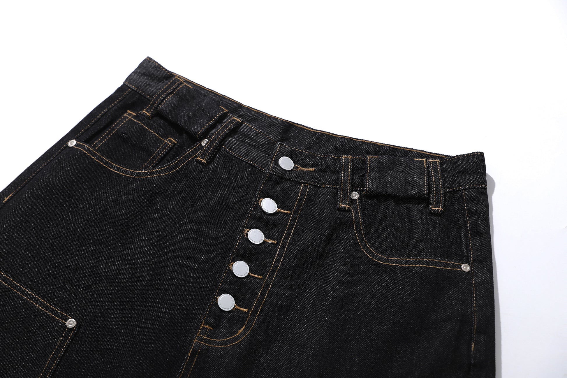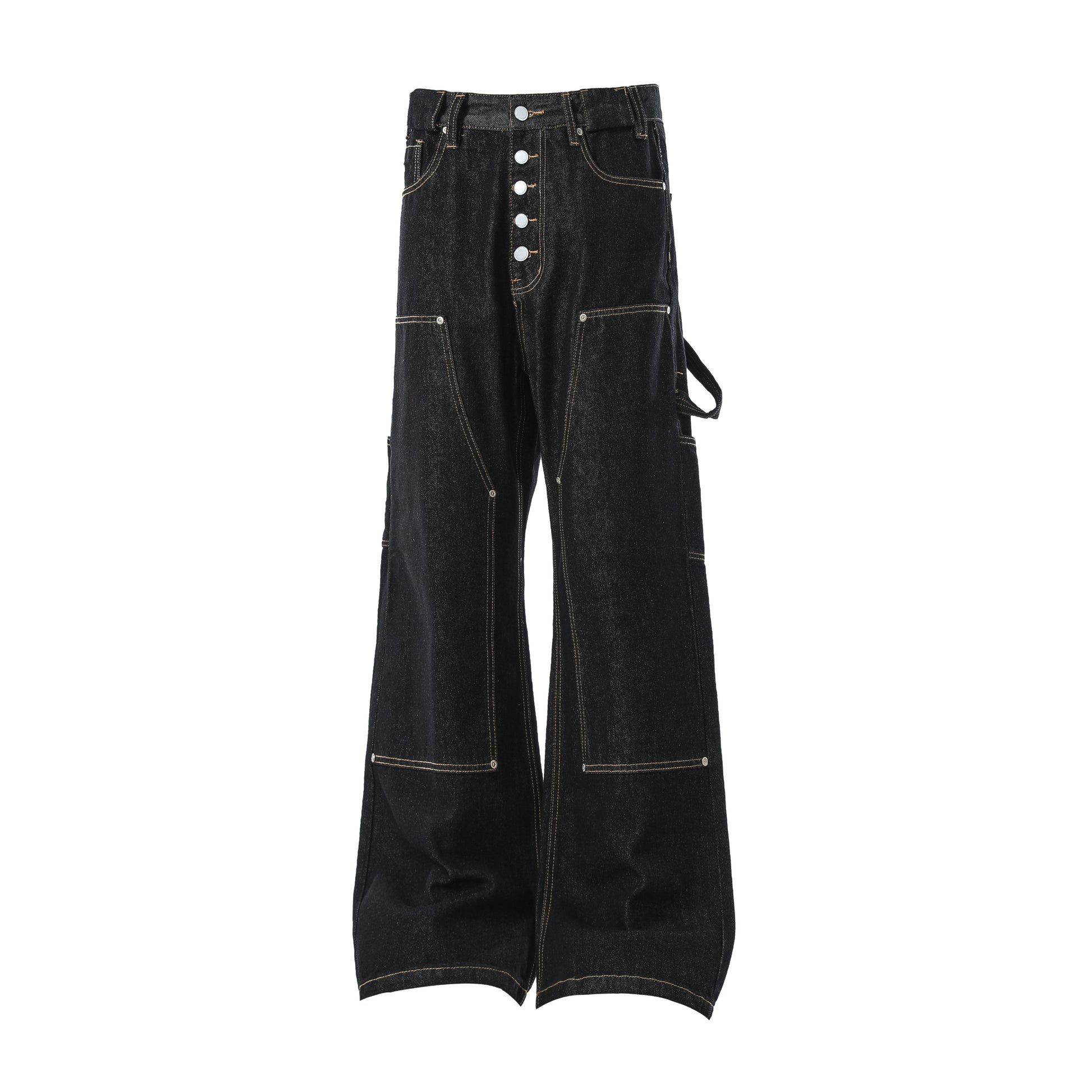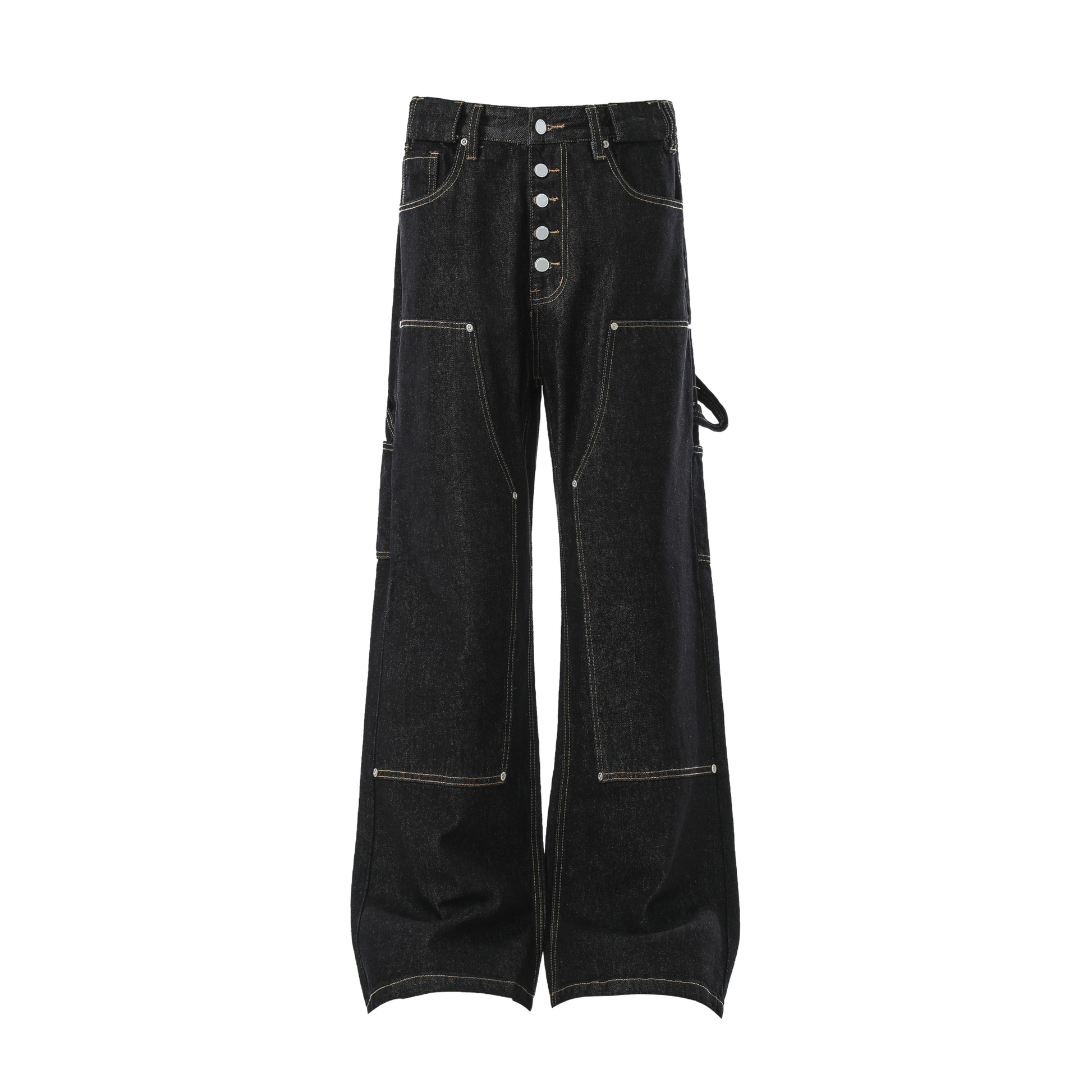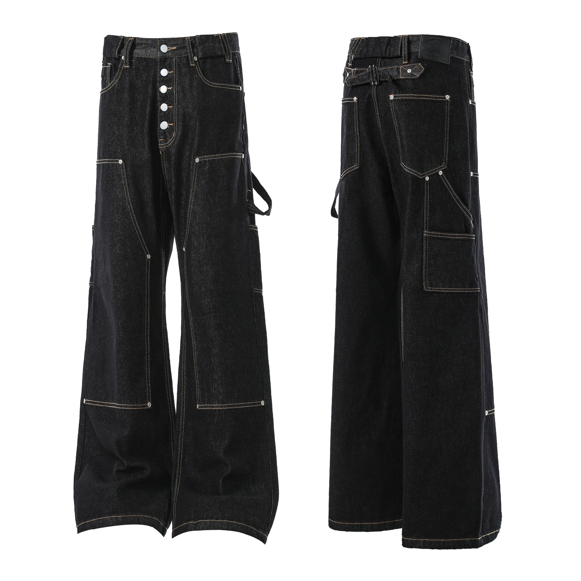 The Omirad Multi-Pocket Workwear Denim Pants merge utilitarian function with a high-street edge. Designed with multiple cargo pockets, reinforced stitching, and exposed button fly detailing, these jeans deliver a bold statement in both structure and silhouette. The wide-leg fit enhances comfort while keeping a strong streetwear attitude.