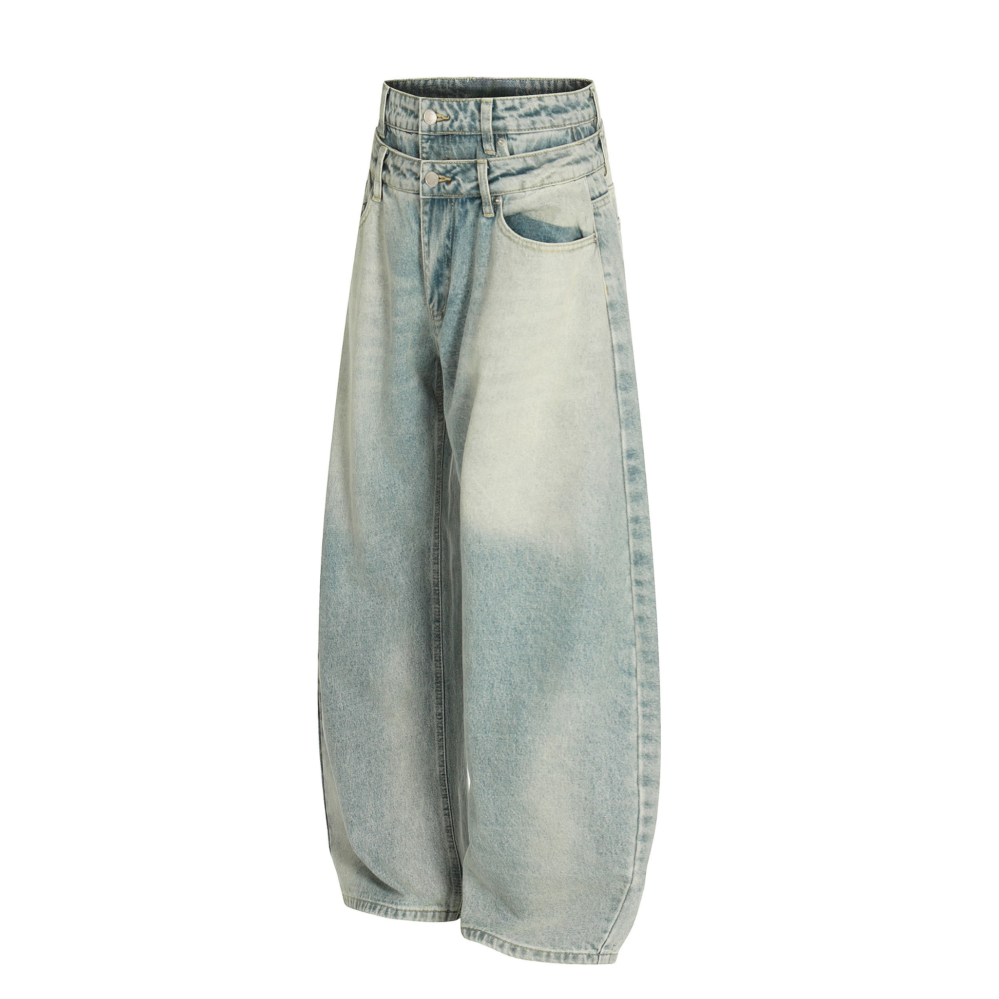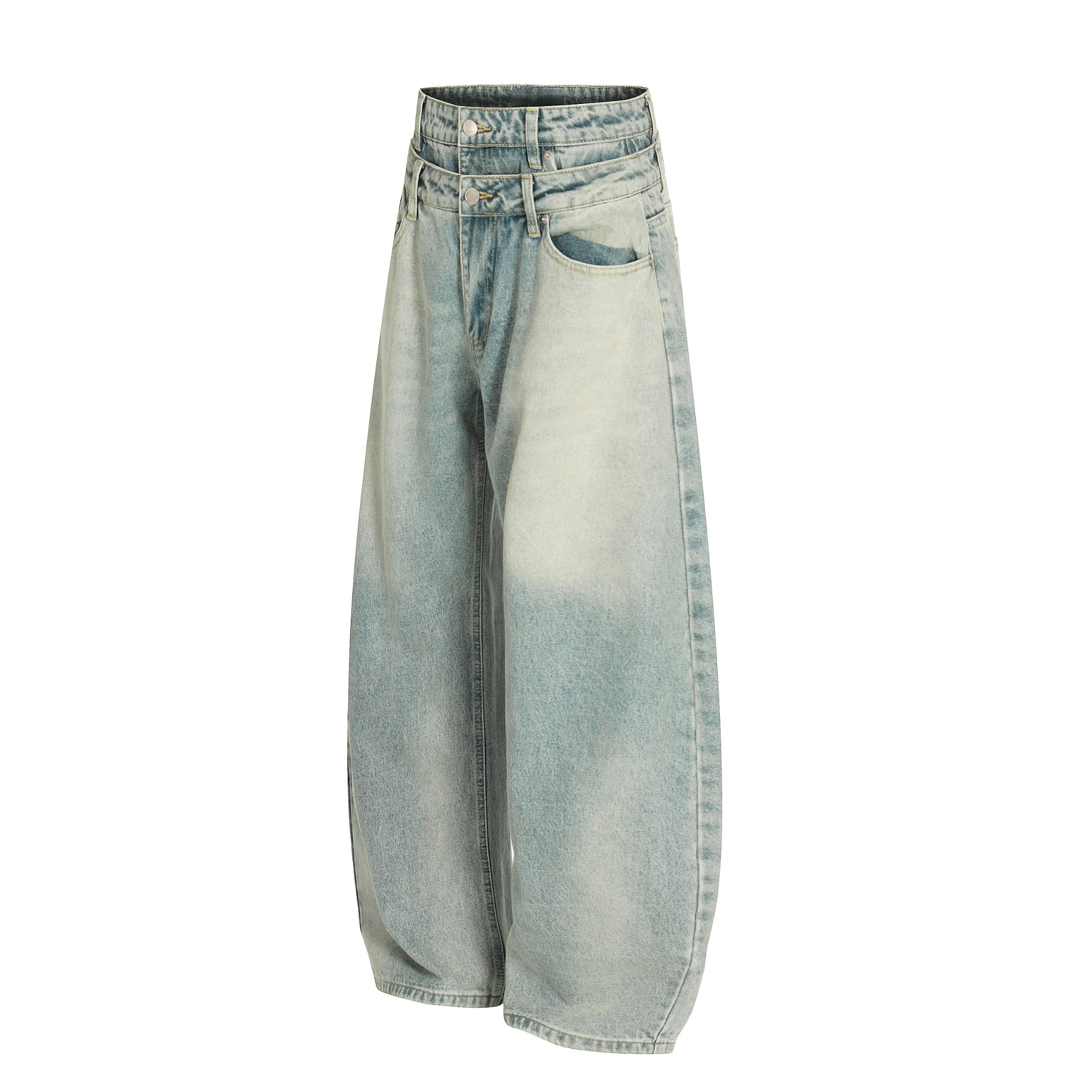 The Omirad Double-Waist Balloon Fit Vintage Jeans push classic denim into bold new territory. Designed with a unique double-waist construction and an exaggerated balloon silhouette, these jeans create a sculpted, high-volume shape that commands attention. The soft vintage wash enhances the retro character, while the premium cotton-blend fabric provides durability, comfort, and structure. Finished with classic 5-pocket detailing and clean top-stitching, this pair blends experimental design with everyday wearability — a true standout for modern streetwear styling.