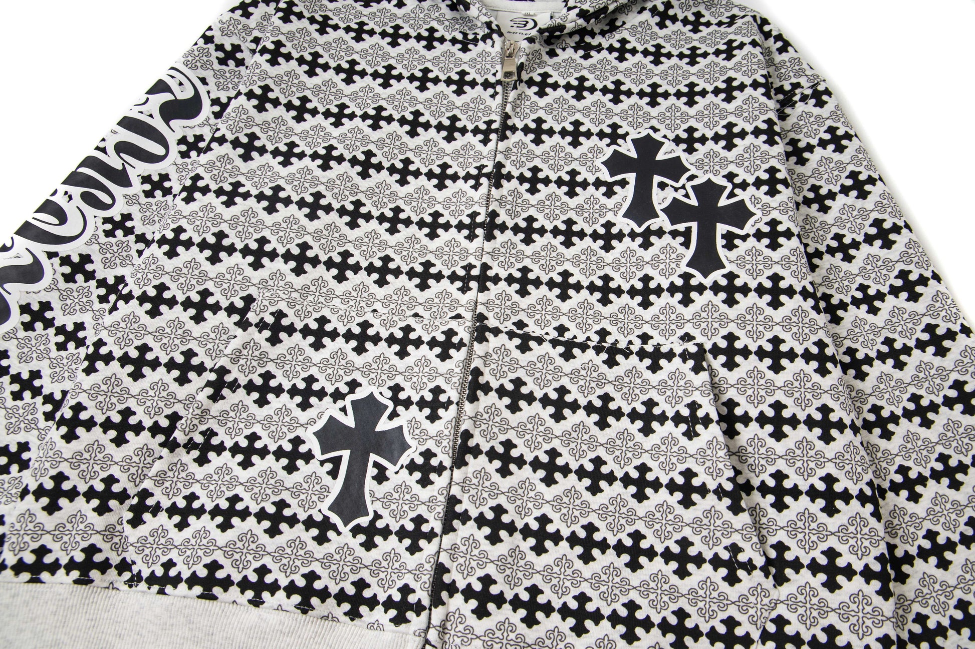 Vintage-Inspired American All-Over Gothic Print Hoodie