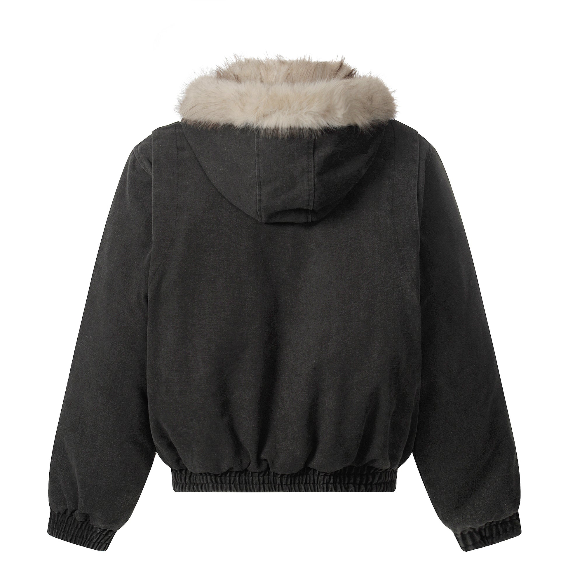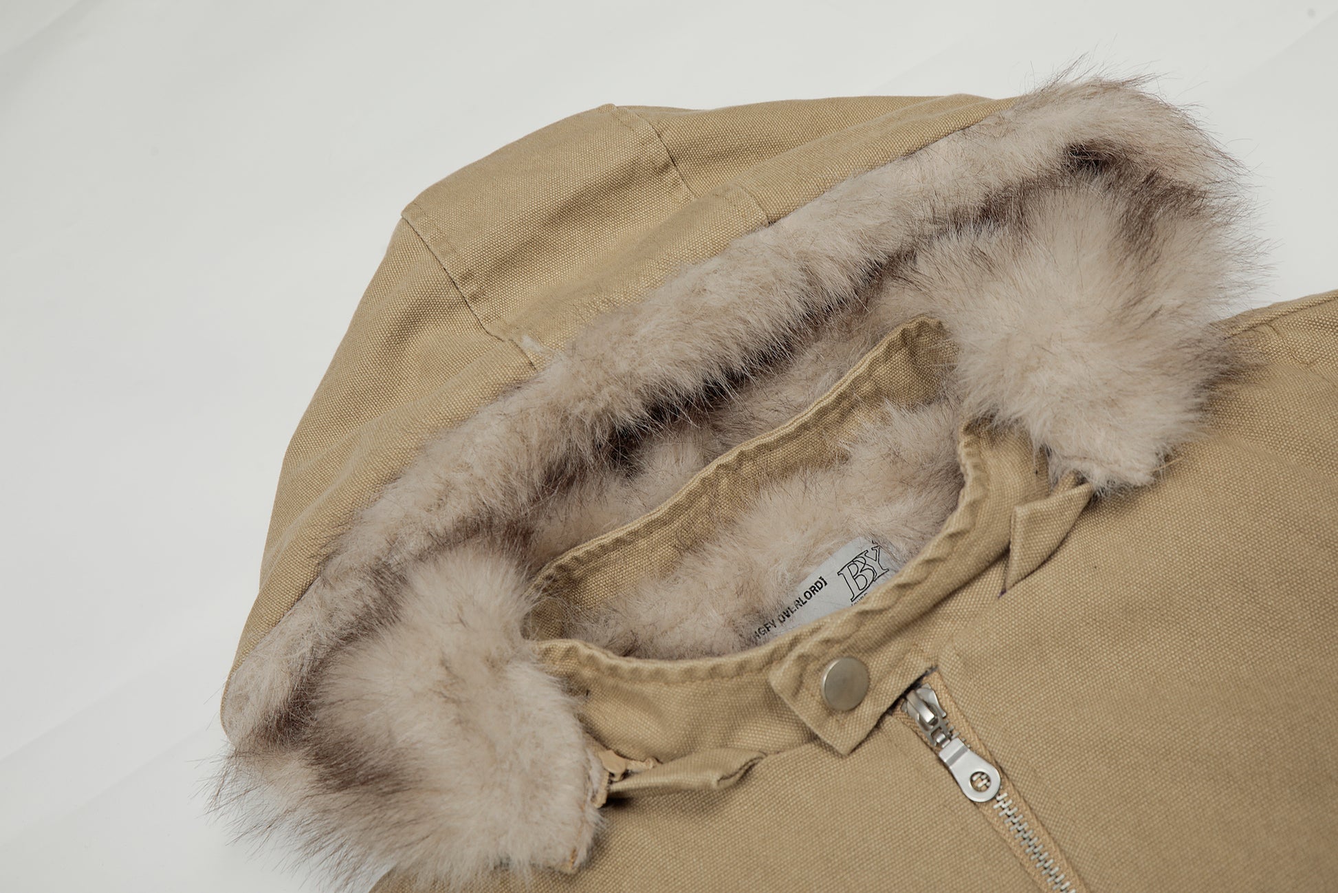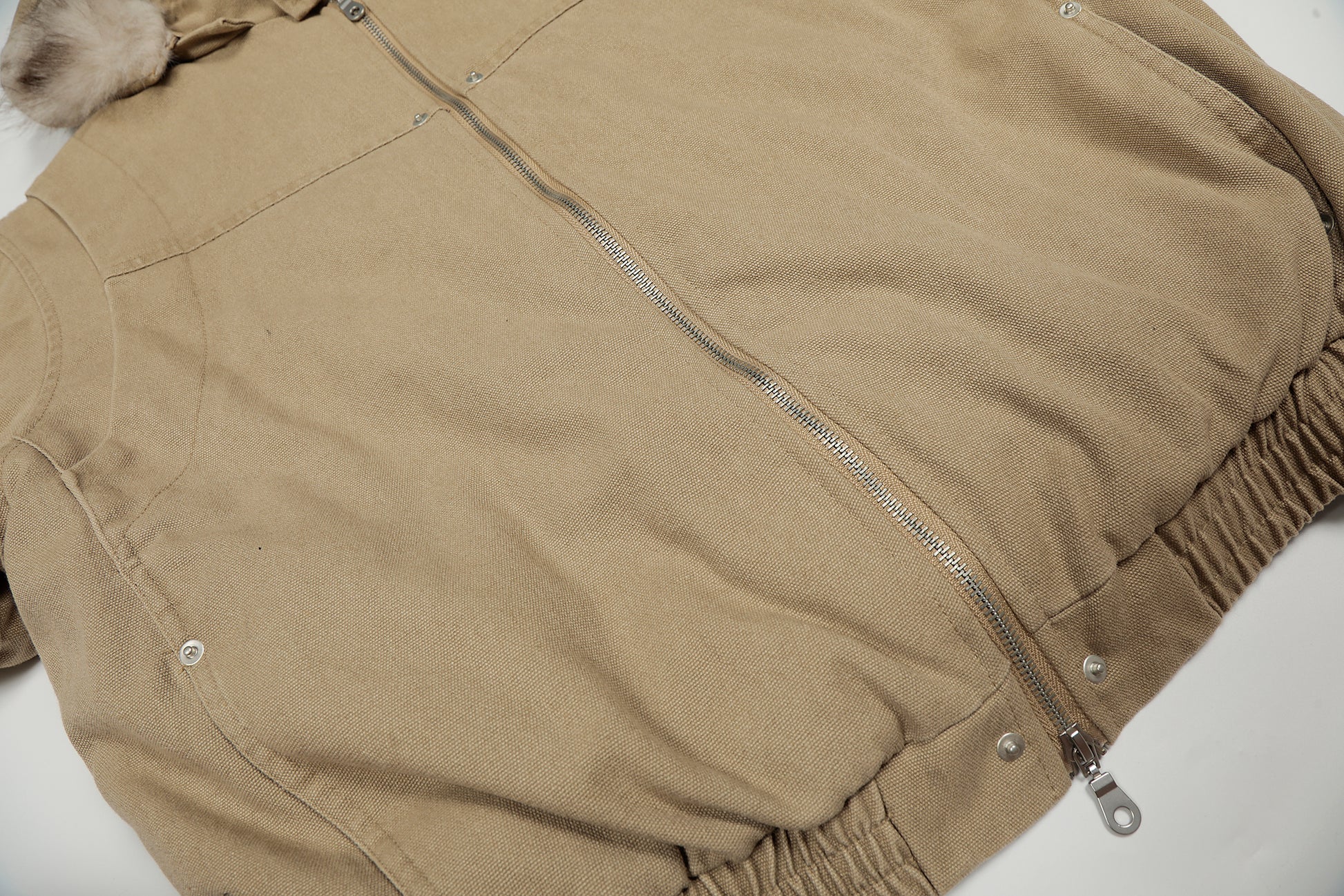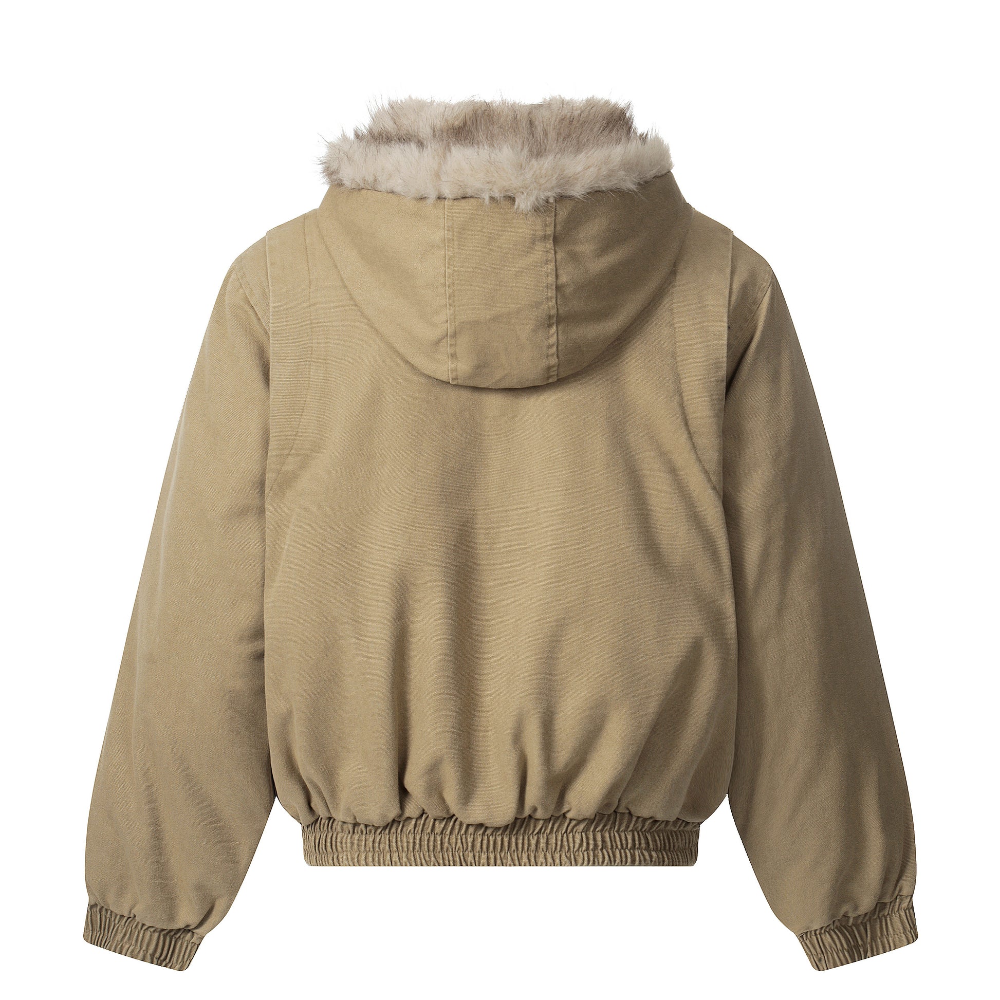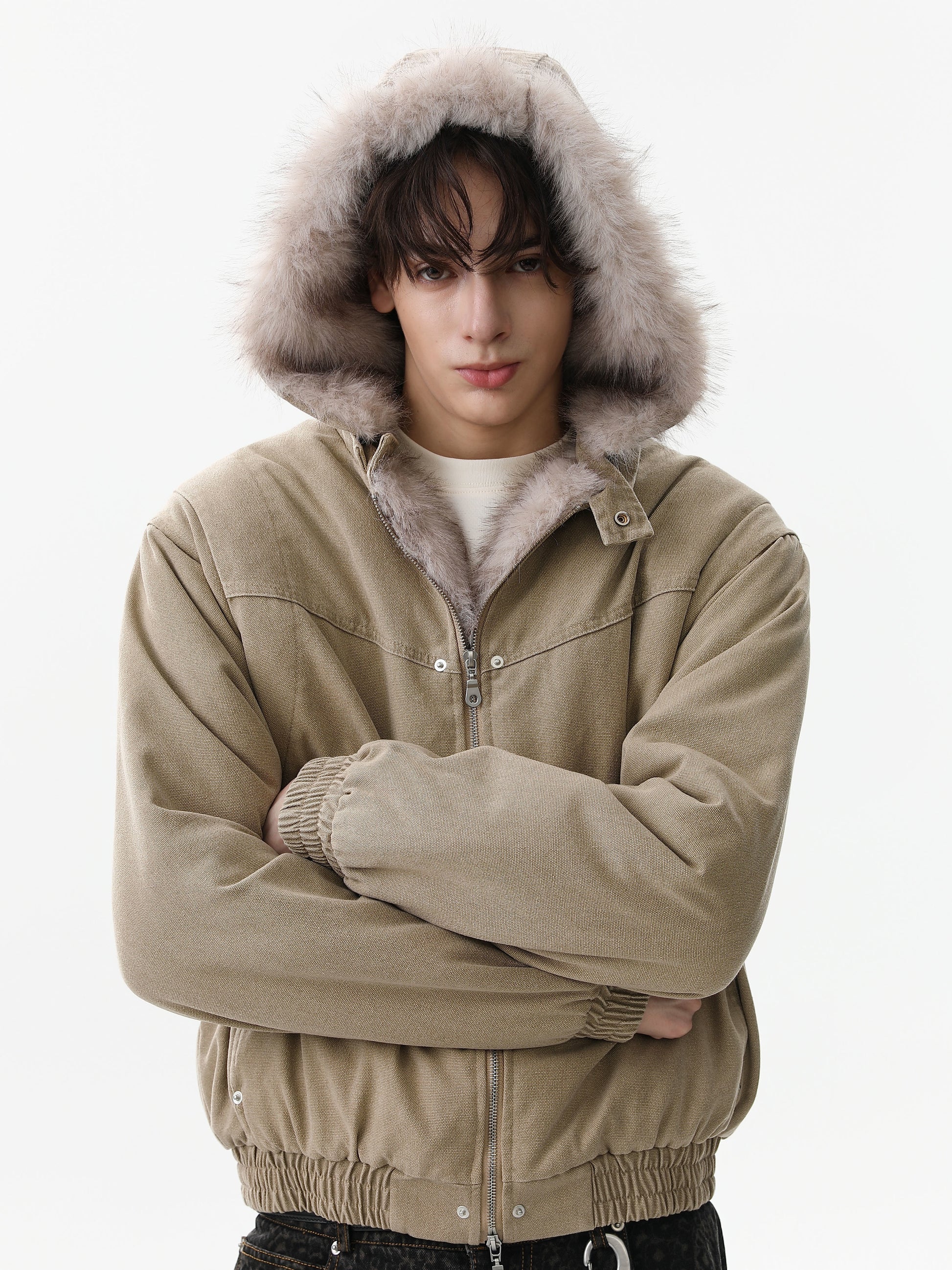 Vintage Old Money Style Detachable Faux-Fur Collar Padded Jacket
