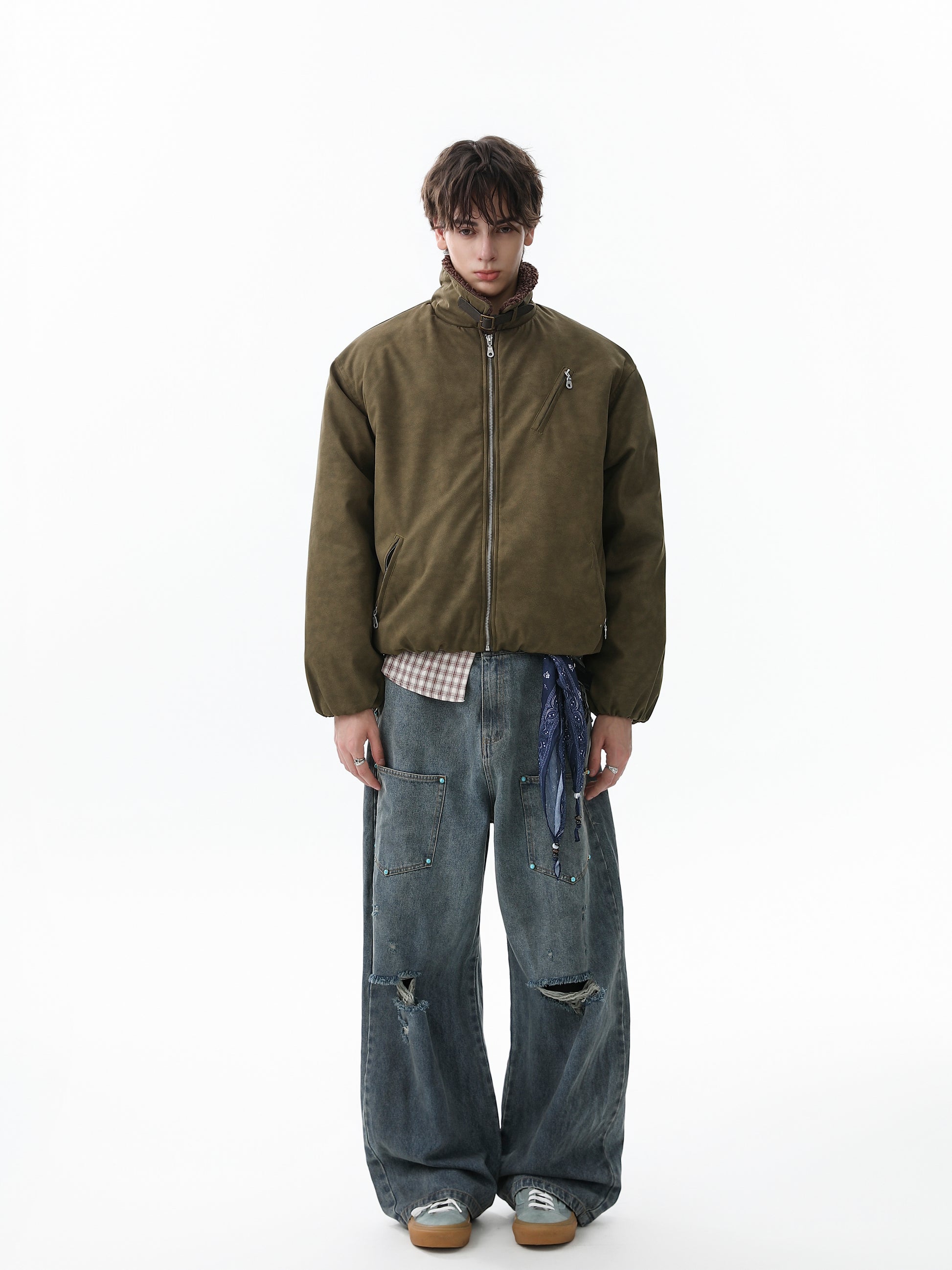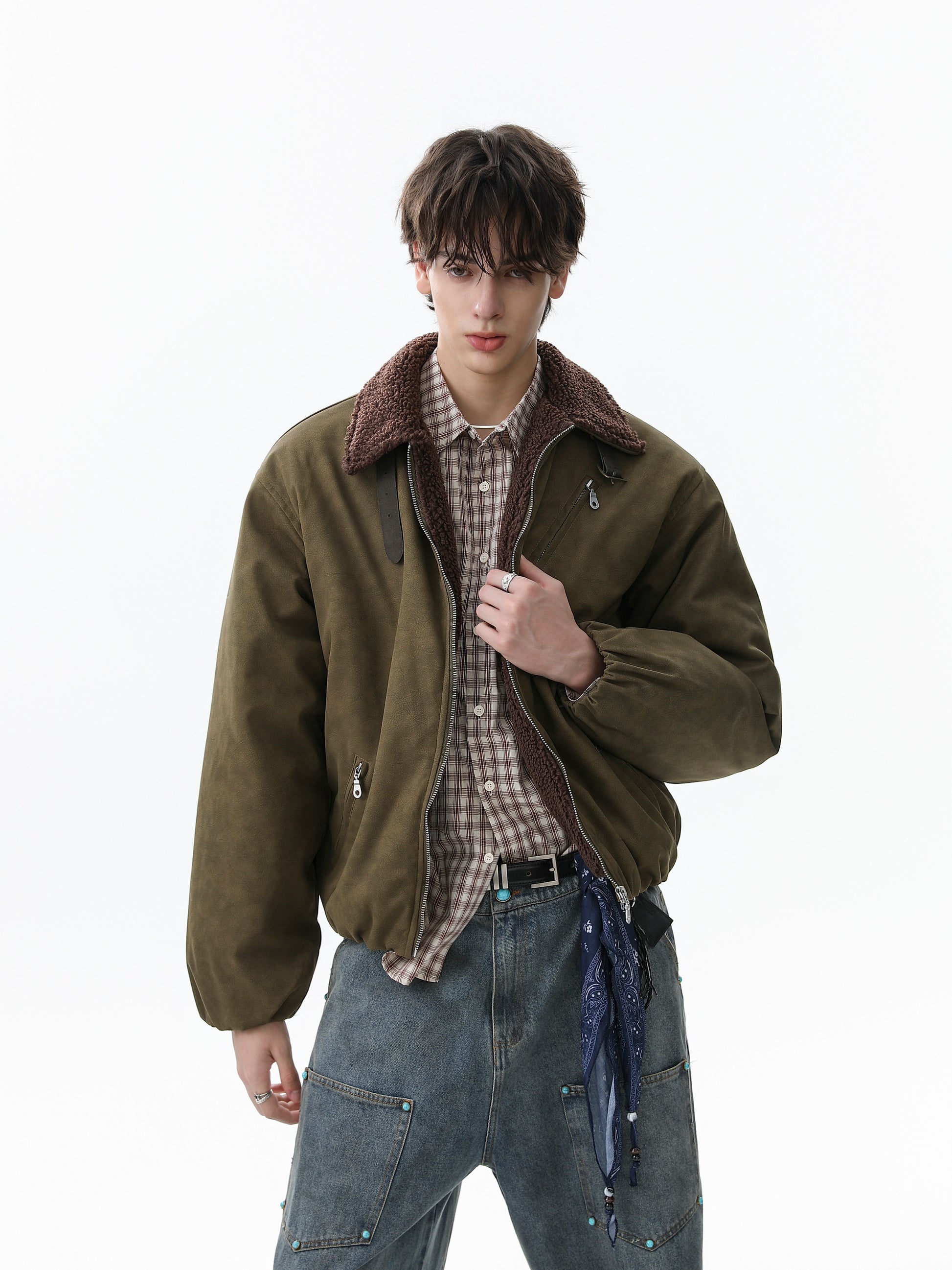 Vintage Old Money Style Faux-Shearling-Lined Padded Jacket