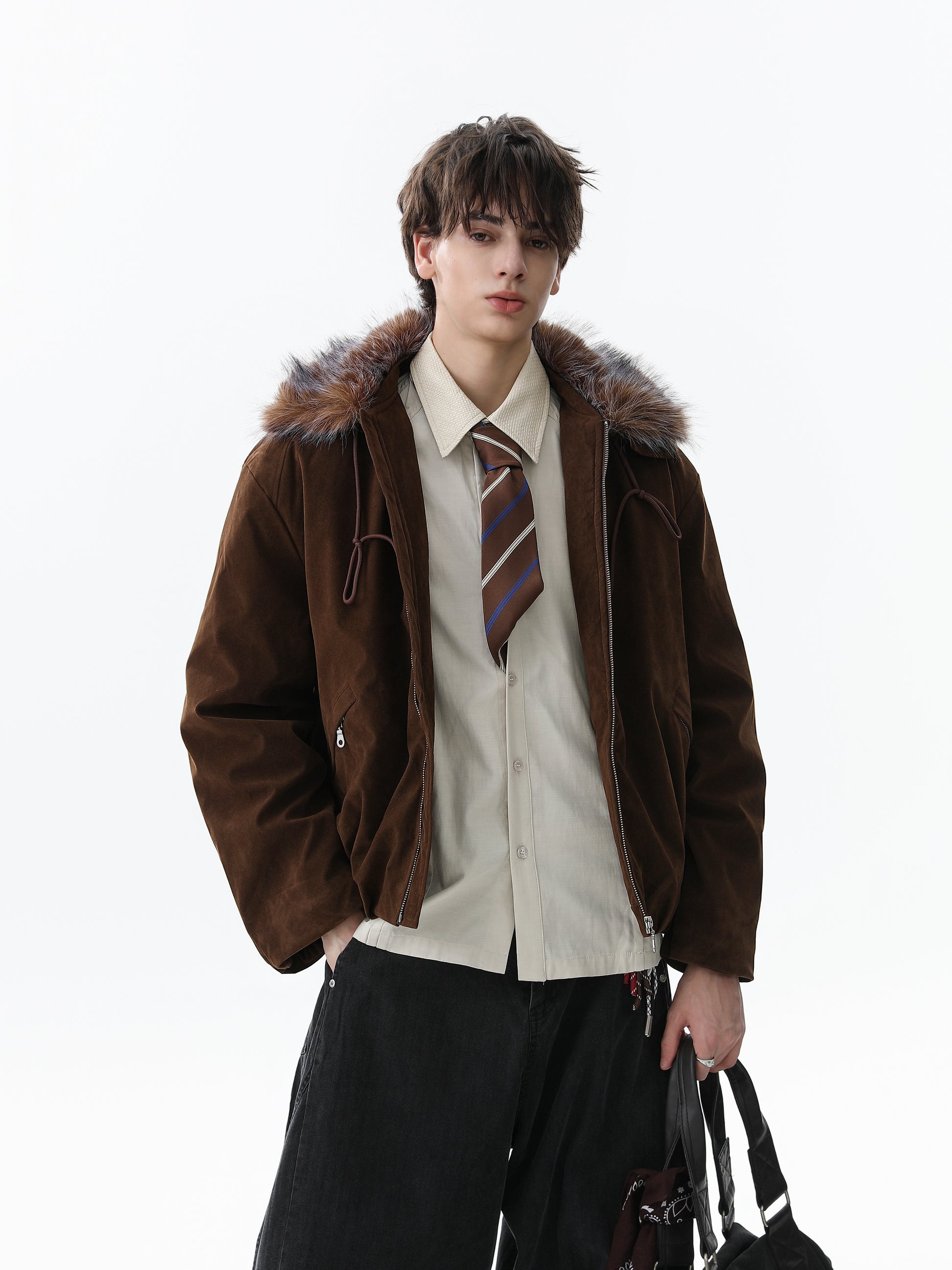 Vintage Old Money Style Fur-Collar Padded Jacket