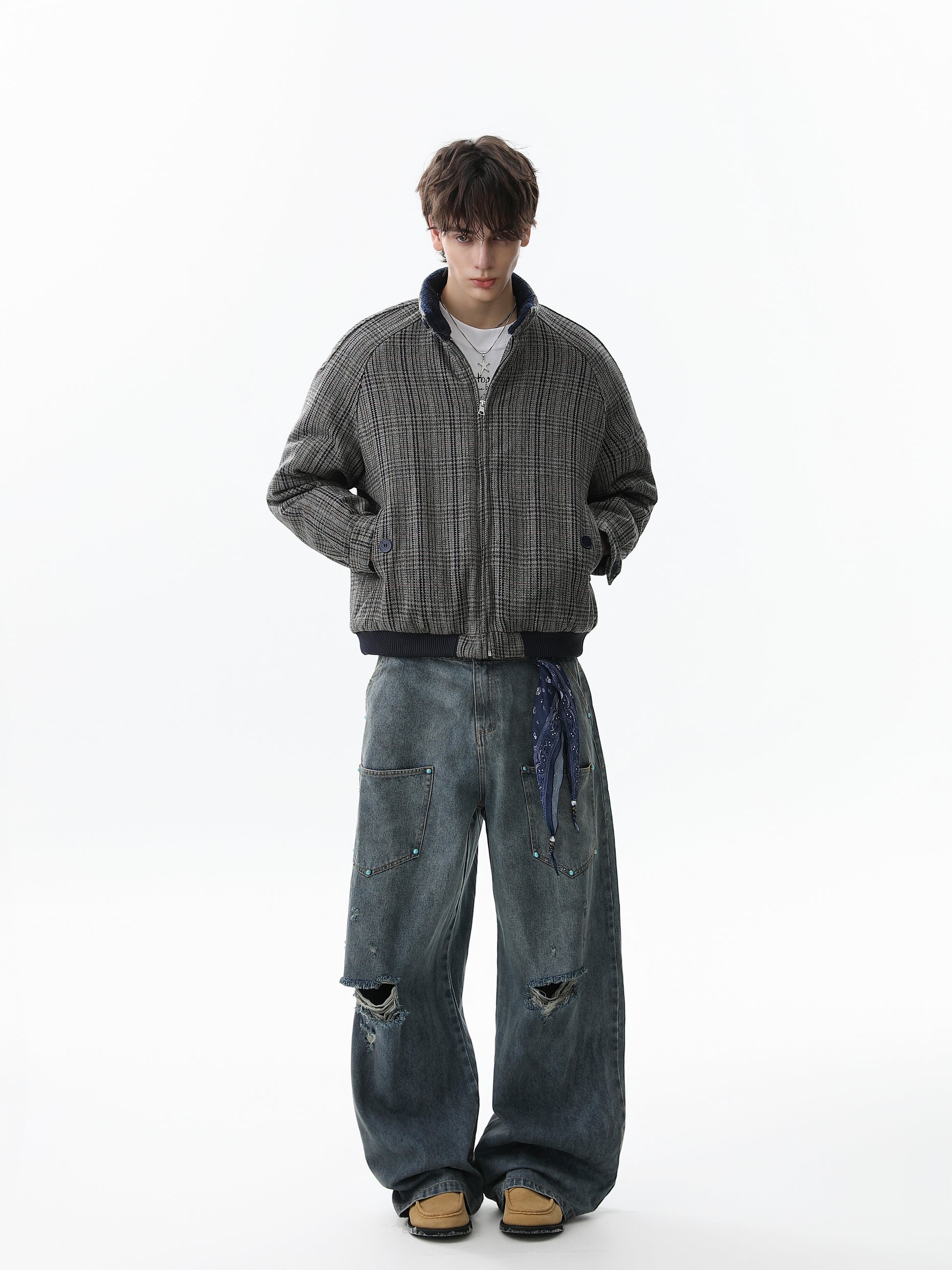 Vintage Old Money Style Plaid Padded Jacket
