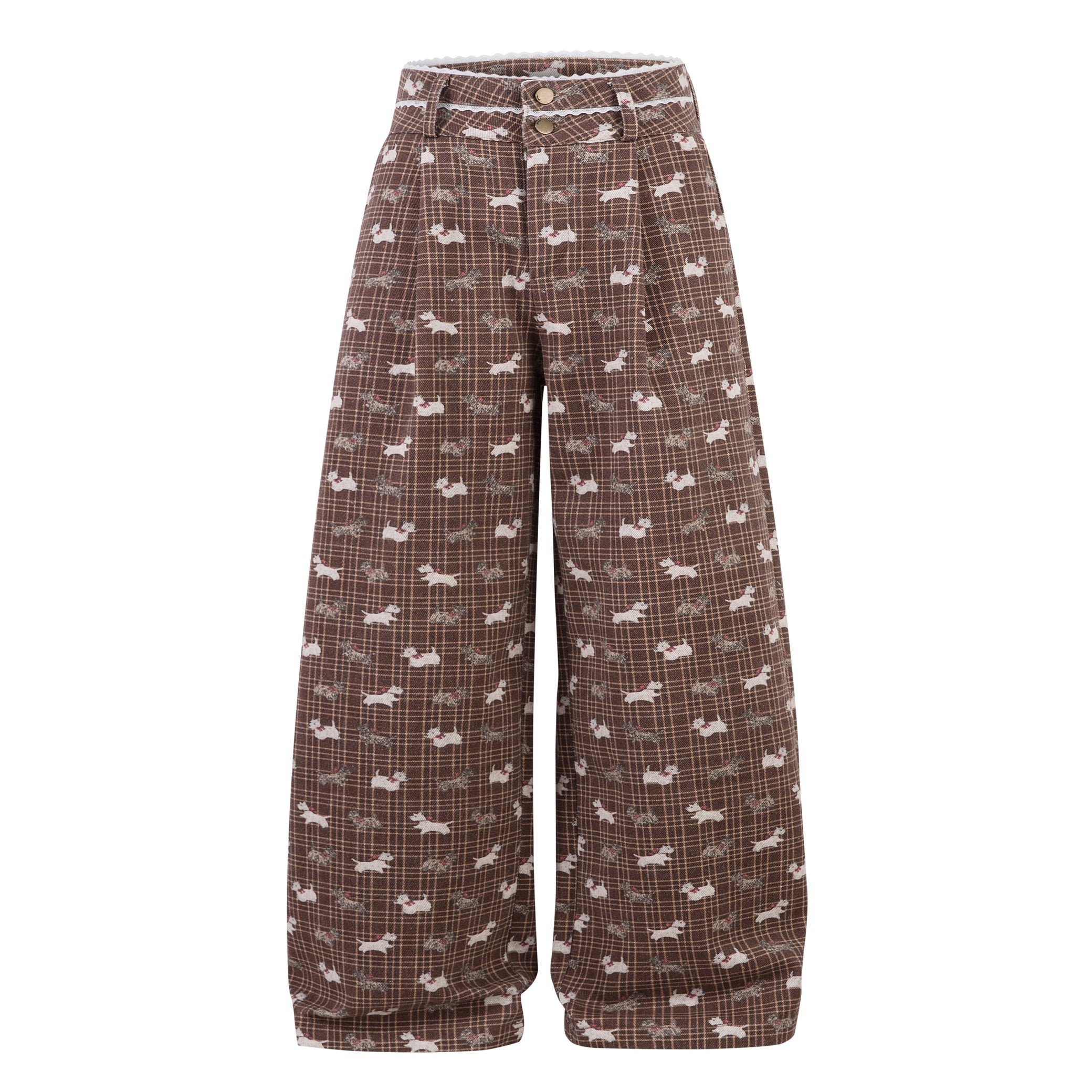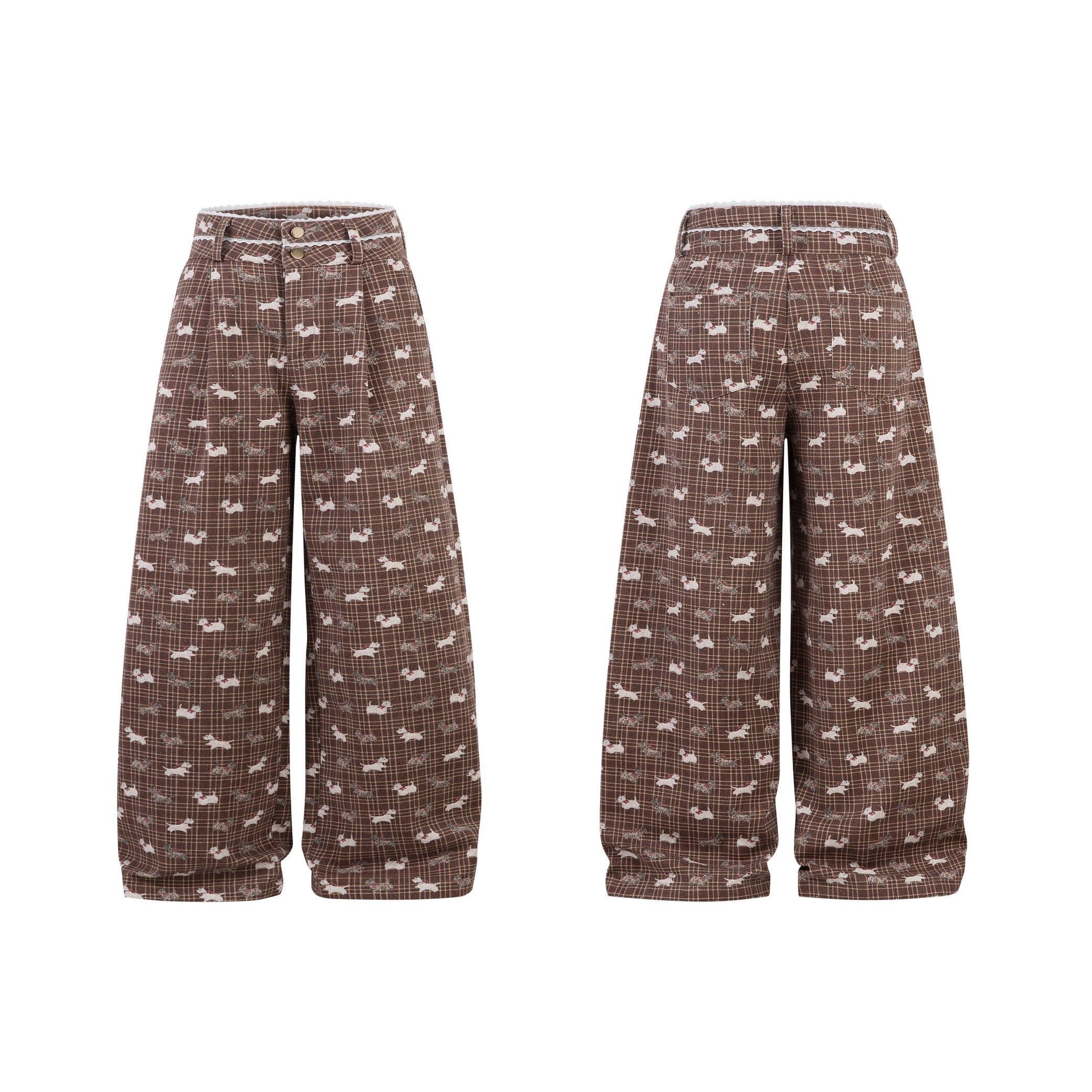 Vintage Street All-Over Puppy Print Lace Panel Pants