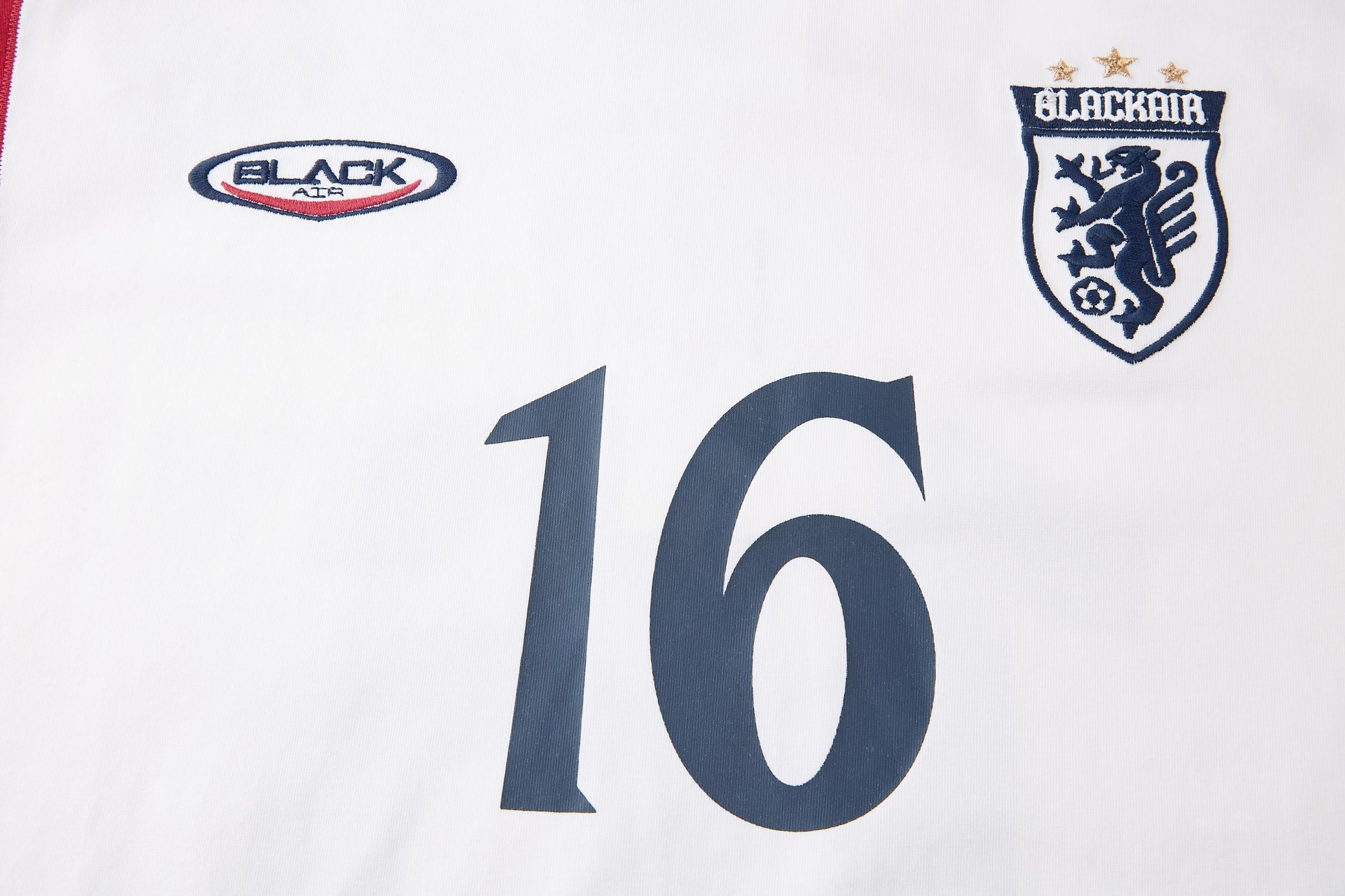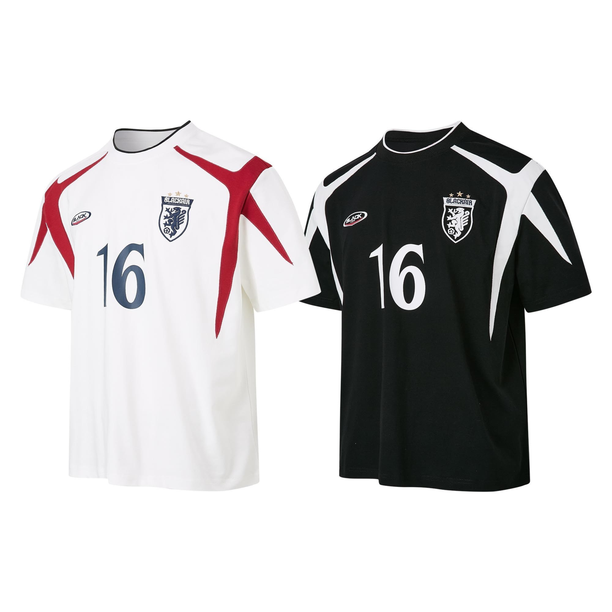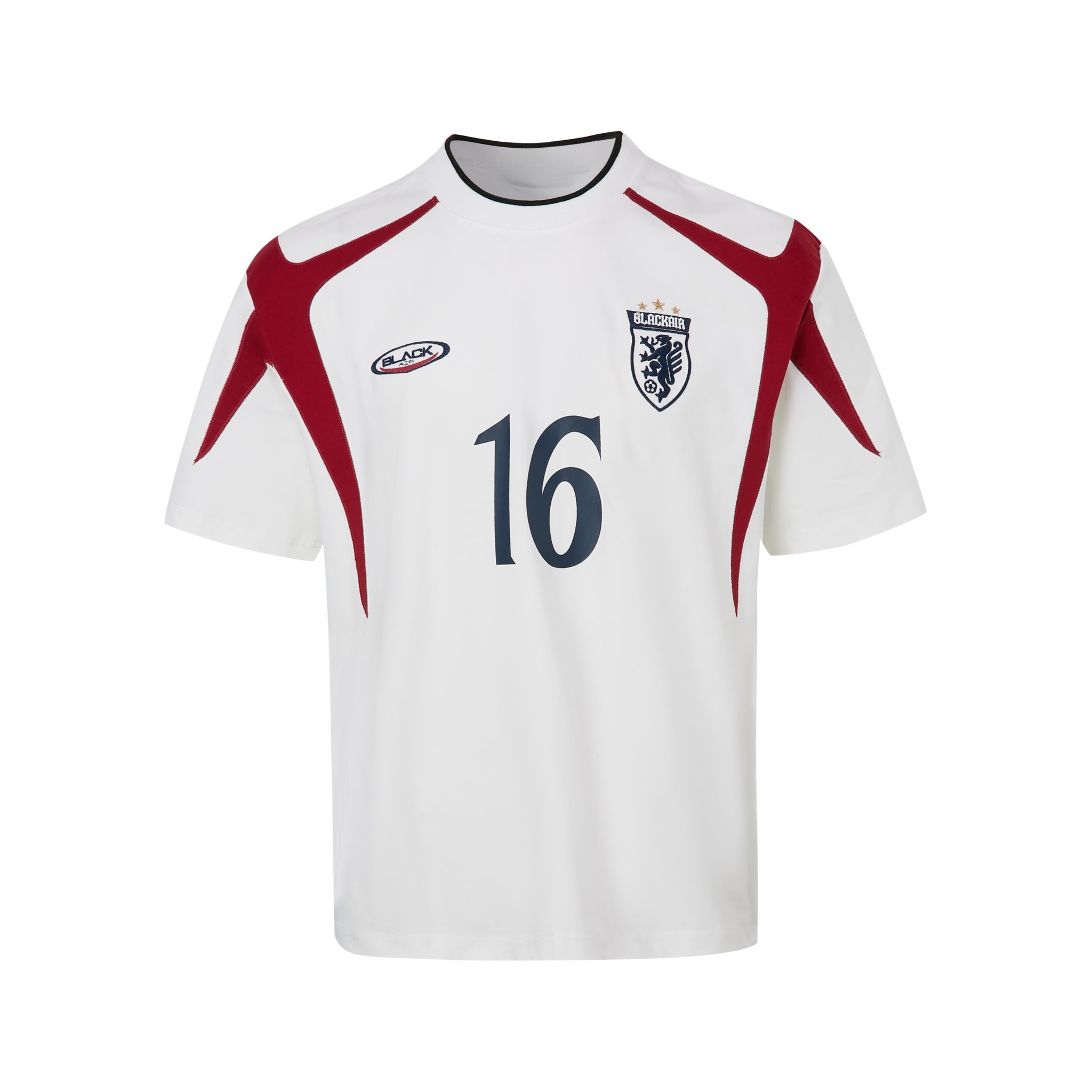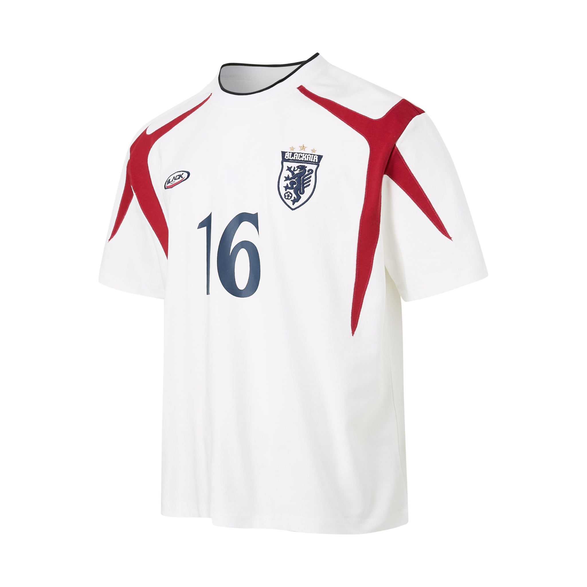 Clothing details: Contrast panel design, bold “16” prints, collegiate crest embroidery, relaxed athletic fit