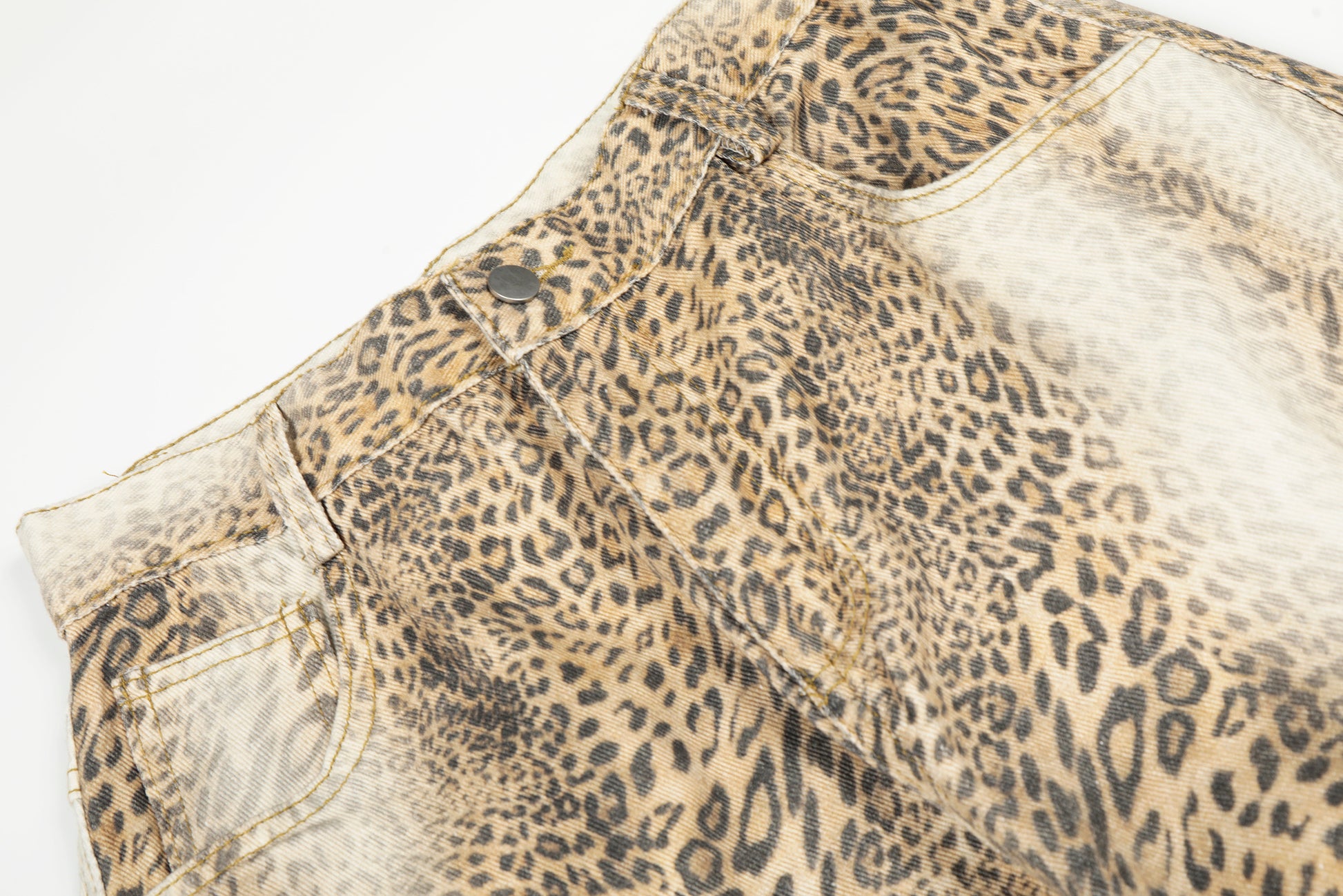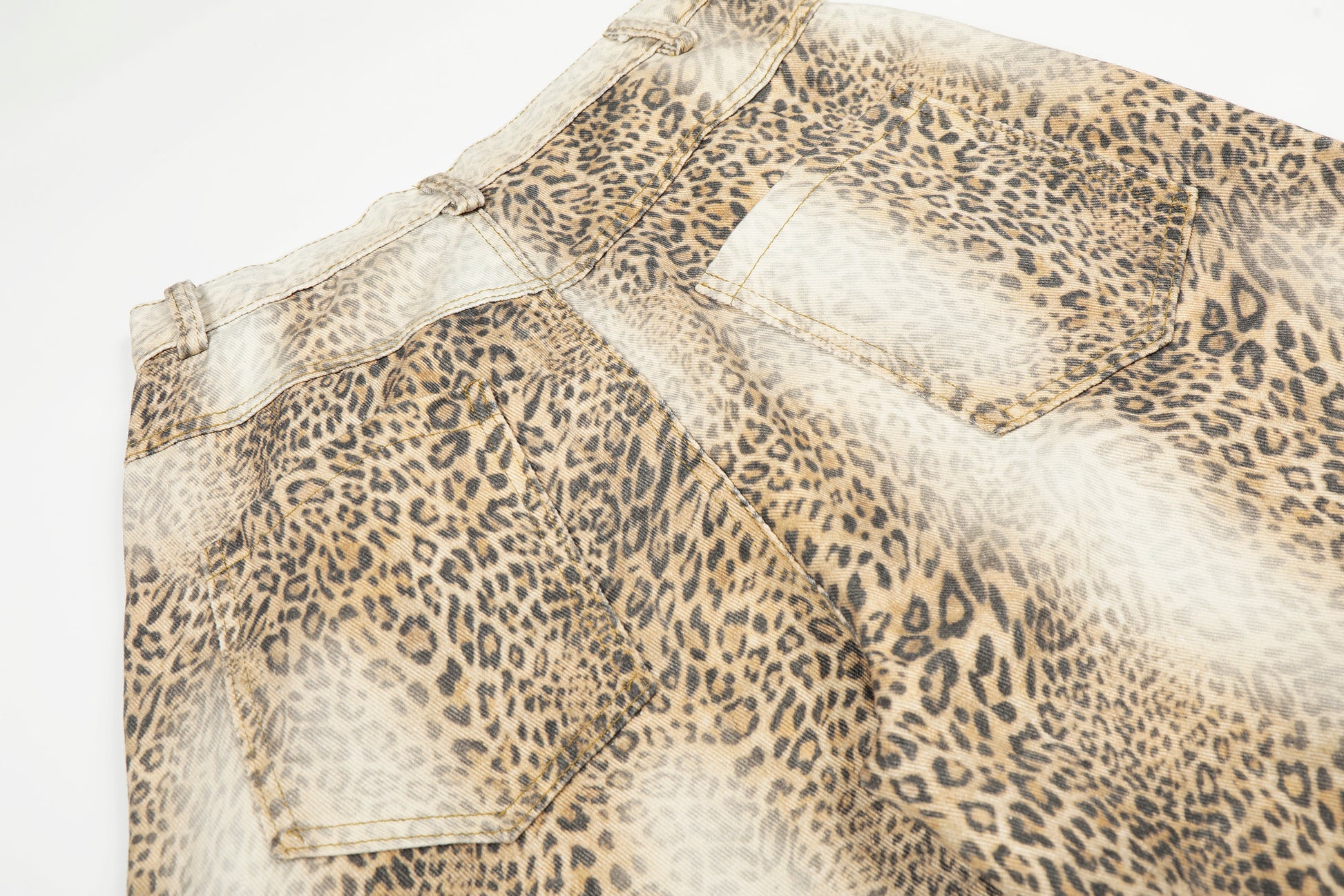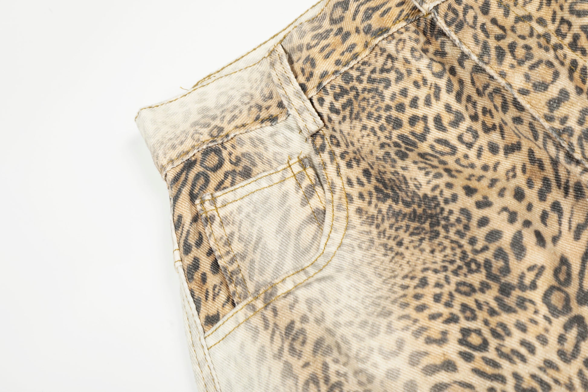 Vintage Streetwear Leopard Curved-Leg Jeans