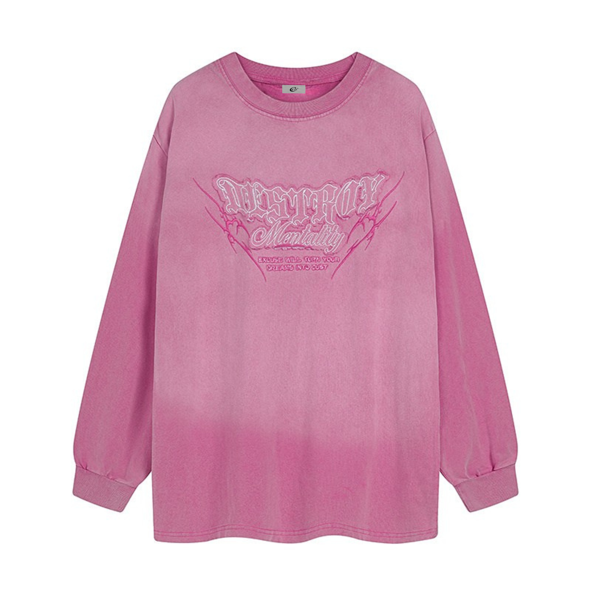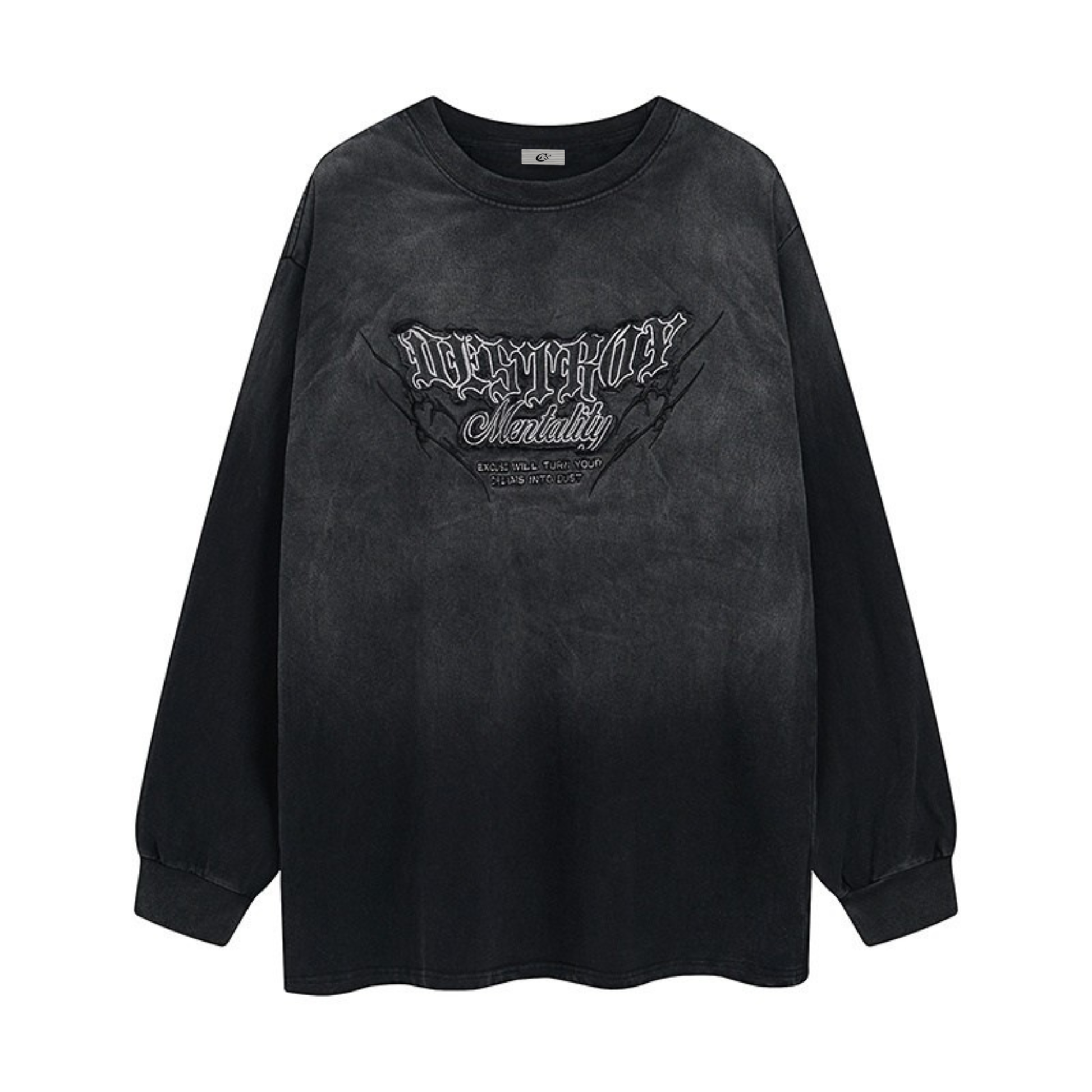 The Omirad Gradient Washed Graphic Long Sleeve Tee brings bold street attitude with a vintage-inspired edge. Featuring a washed gradient fade and a striking “Destroy Mentality” front graphic, this piece blends softness with a statement look. The relaxed fit and ribbed cuffs make it ideal for everyday wear, adding effortless texture and character to any streetwear lineup.