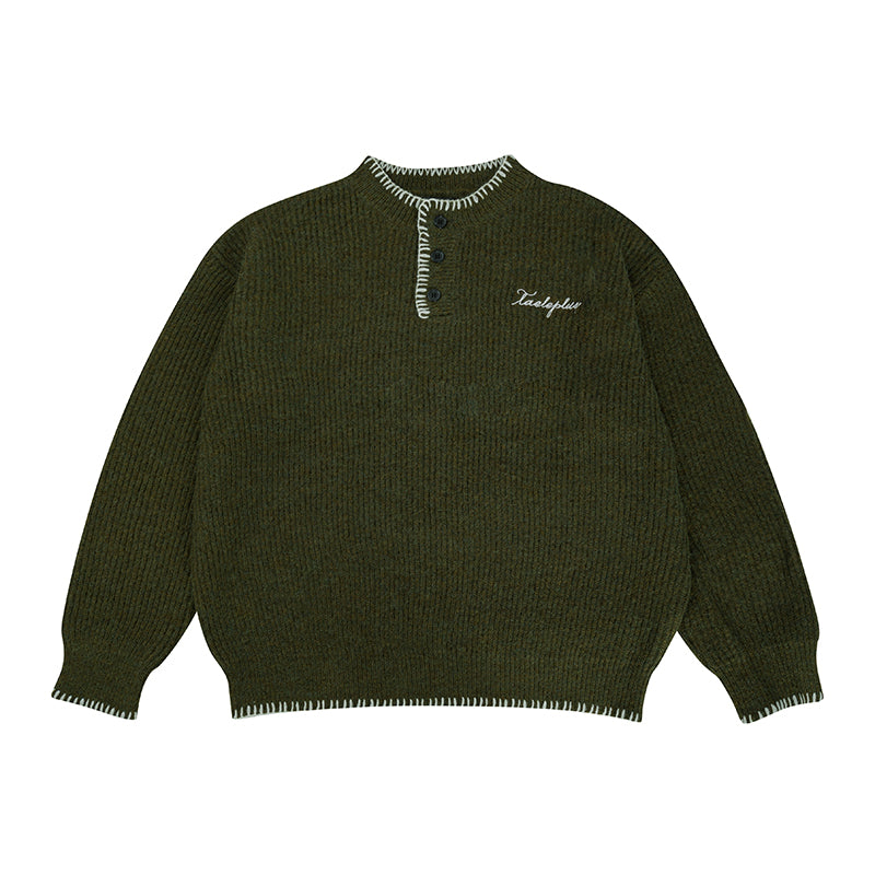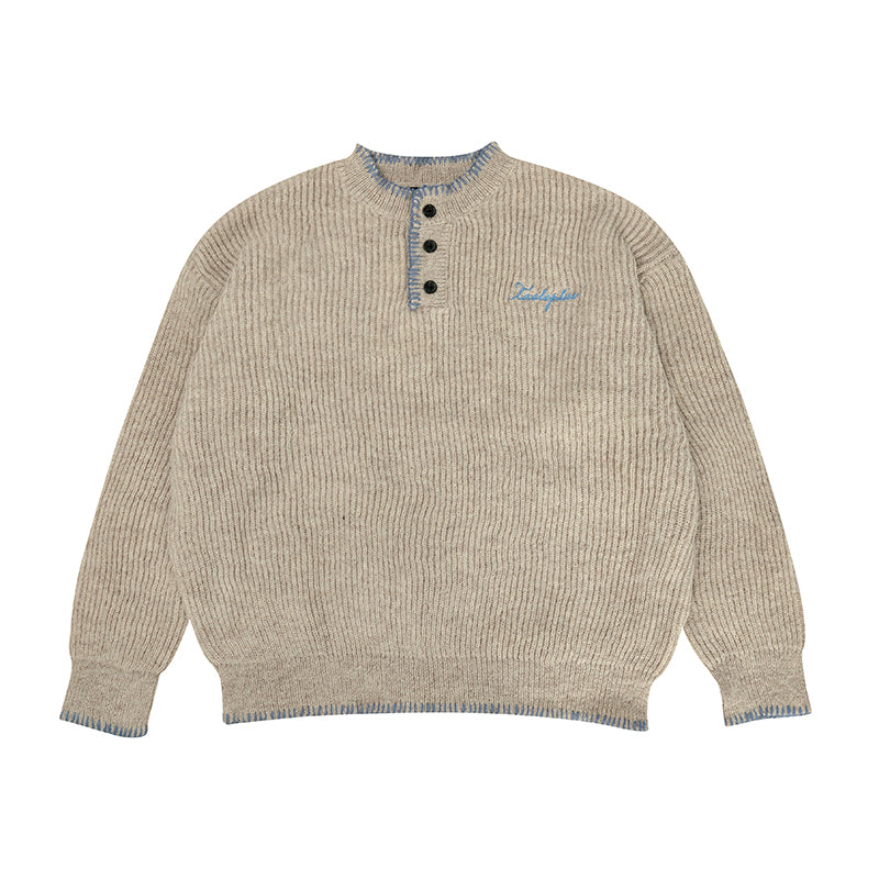 Wool Blend Henley Knit Sweater